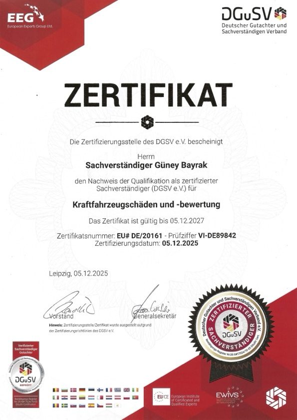 Mein Name ist Güney Bayrak. Ich bin Maschinenbauingenieur und zertifizierter Kfz-Sachverständiger aus Oberhausen.